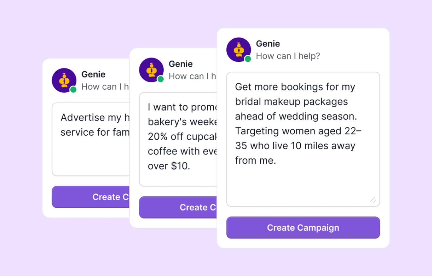 From idea to live in just a few minutes, genie takes care of it all