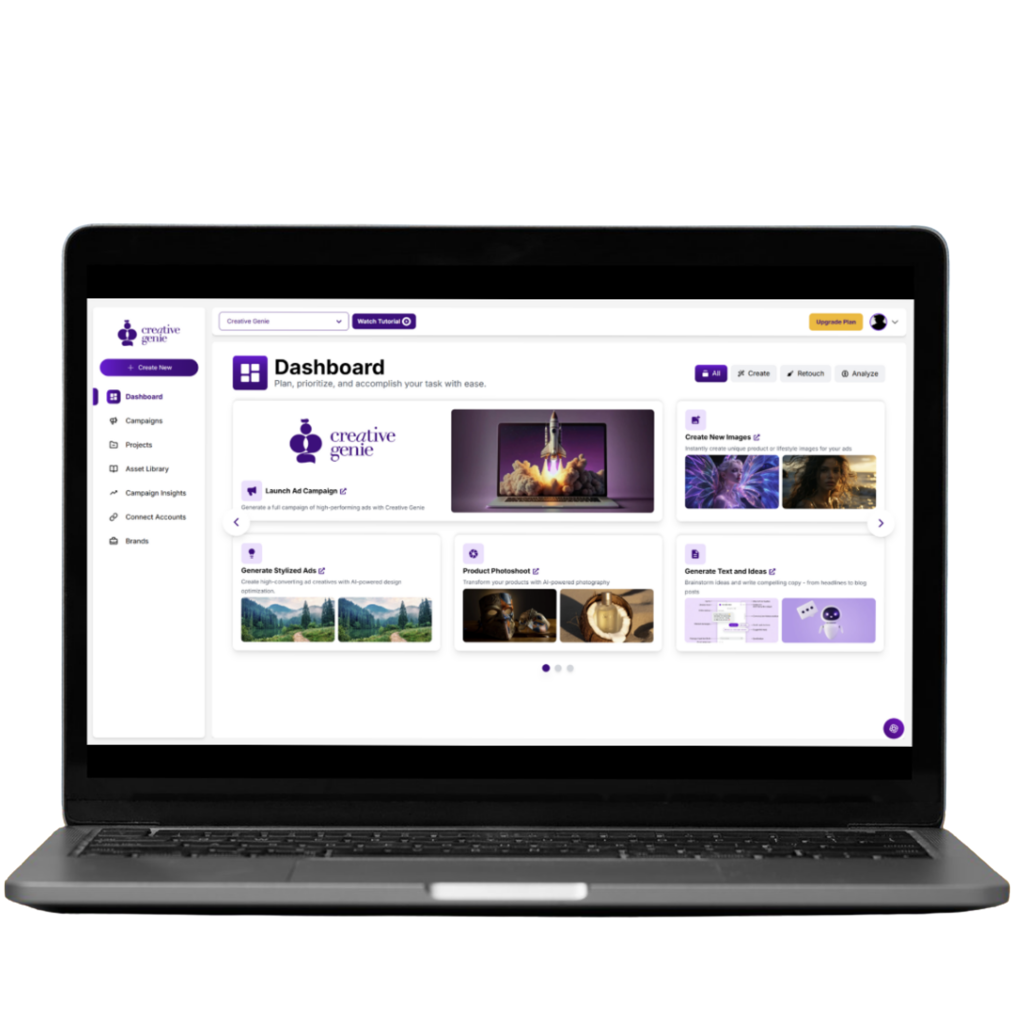 "Instantly generate scroll-stopping images and high-converting ad copy, then launch your Meta campaigns directly."
